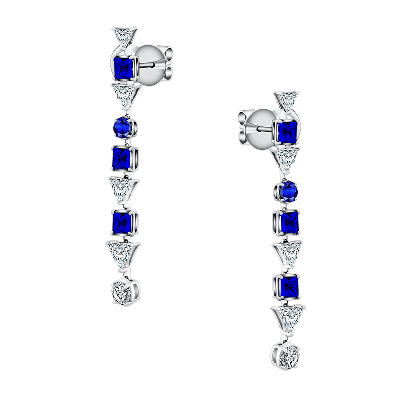 Kalau Anda mencari koleksi anting-anting berlian denganprecious stone, ini bisa jadi opsi terbaik. Ada anting-anting berkualitas dari MONDIAL Precious Opulence dengan 8 butirblue sapphire dengan potonganround & princess shapedan 10 butir F VVSdiamonds yang dibalut dalam 18Kwhite gold.