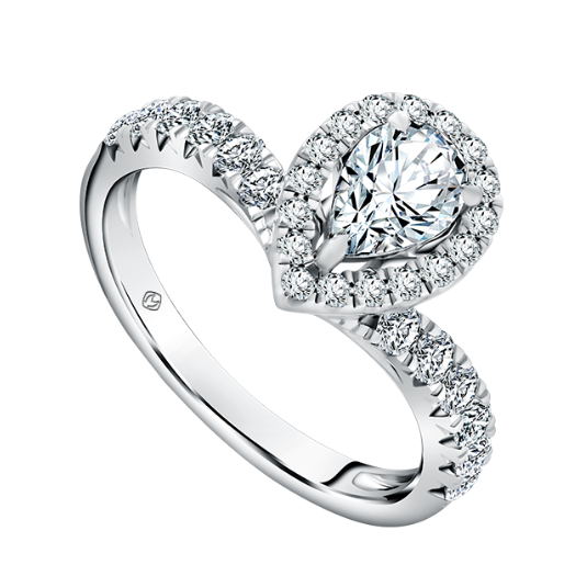 Cincin dengan butiran berlian bentuk pear juga jadi pilihan populer sebagai cincin tunangan. Berlian berbentuk pear memiliki kelebihan yang dapat memberi siluet jenjang. Bentuknya yang meruncing di salah satu sisi membuat ilusi yang bagus. Salah satu inspirasi cincin tunangan berlian dengan tatahan pear-shaped diamond bisa Anda lihat pada koleksi I Said MONDIAL Pear Shape V berikut.