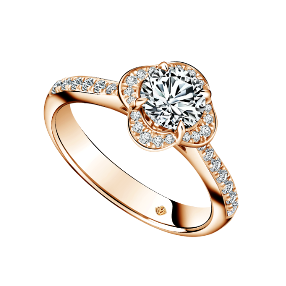 Model cincin berlian tunangan lainnya yang jadi favorit dan tak lekang waktu adalah halo ring. Desain halo ring memiliki ciri sisipan batu permata besar berbentuk bundar di bagian tengah, sementara di bagian sisinya disematkan mata berlian dengan ukuran yang lebih kecil. Kalau Anda menyukai model cincin halo, cincin tunangan Cataleya Ring ini sempurna jadi andalan.