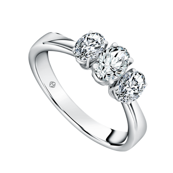 Rekomendasi cincin berlian tunangan lainnya yang populer yakni trilogy ring atau cincin bermata tiga. Desainnya memiliki sematan berlian besar di tengah yang diapit oleh dua batu berukuran lebih kecil di sampingnya. Desain ini memiliki makna yang mewakili kisah cinta abadi. Untuk model trilogy, Anda bisa memilih cincin tunangan dari I Said MONDIAL di koleksi Oval Trilogy Ladies Ring berikut.