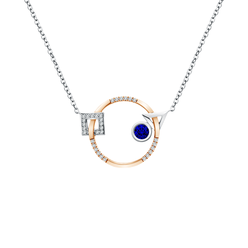 Salah satu rekomendasi kalung model terbaru dari dari MONDIAL Precious Lune yakninecklace dengan 32 butir berlian berbentukround F VVS ini. Dilengkapi dengan tatahanround blue sapphireyang dipadukan dengan 18K rose gold.