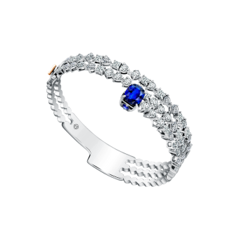 Ada pula gelang berlian dengan sematan safir biru dari koleksibangle dari MONDIAL Precious Lavesa. Dipercantik olehceylon royal blue sapphire dan 47 butir F VVS berlian dalam potonganround and princess shapeyang membuat tampilannya makin sempurna.
