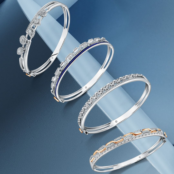 Ada pula kado pernikahan emas dengan tatahan berlian di koleksi gelang MONDIAL Dreams berikut ini. Dilengkapi dengan sematan berbagai bentuk potongan berlian potongan round, princess, marquise, oval, pear shape, hingga heart shape yang berpadu dengan white gold.