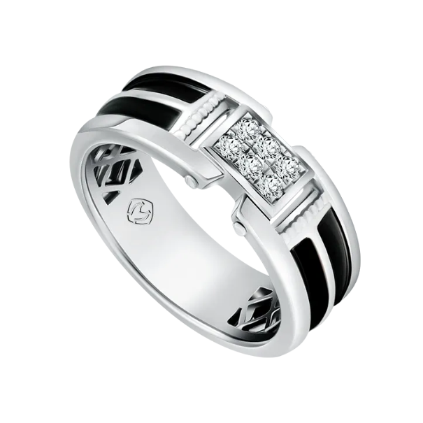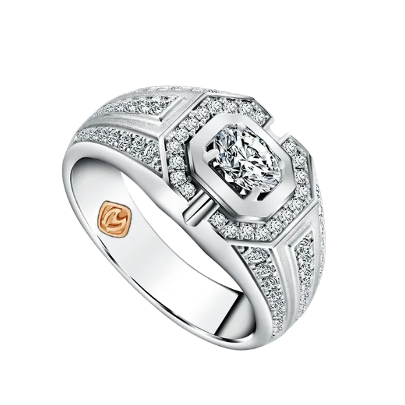 Untuk tampilan formal, mengenakan tuxedo atau suit adalah andalan. Pilih cincin dengan desain yang lebih klasik namun tetap standout untuk melengkapi gaya formal Anda. Seperti pada model cincin pria elegan MONDIAL Verdantio berikut dengan nuansa white gold yang maskulin.