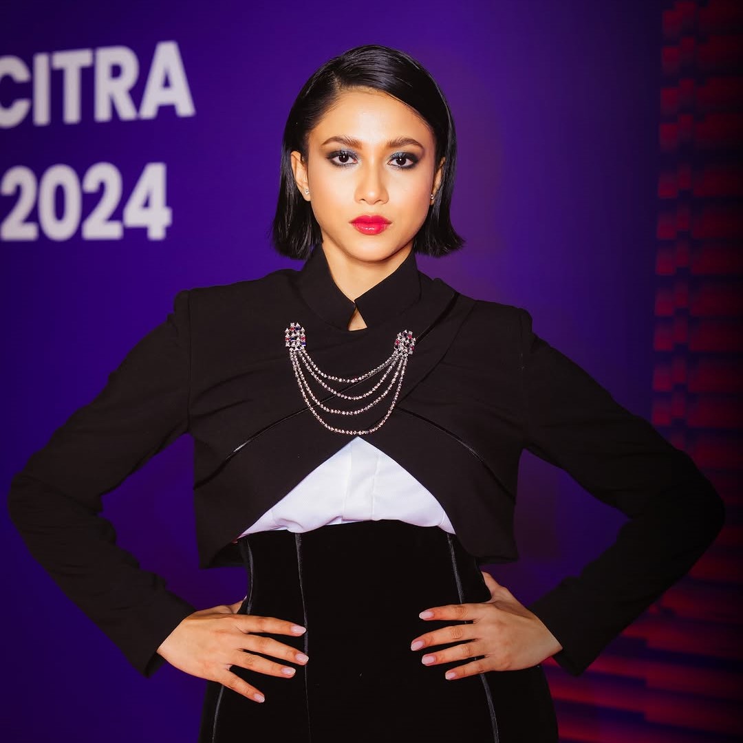 Aghniny Haque tampil menawan di karpet merah Malam Anugerah Piala Citra, Festival Film Indonesia 2024. Andalkan busana yang memadupadankan wastra dengan crop jacket potongan beskap, serta korset dan celana panjang yang menciptakan gaya bold namun tetap elegan. Padu padan bros The Tassel MONDIAL makin melengkapi penampilannya yang memancarkan pesona wanita kuat dan percaya diri.