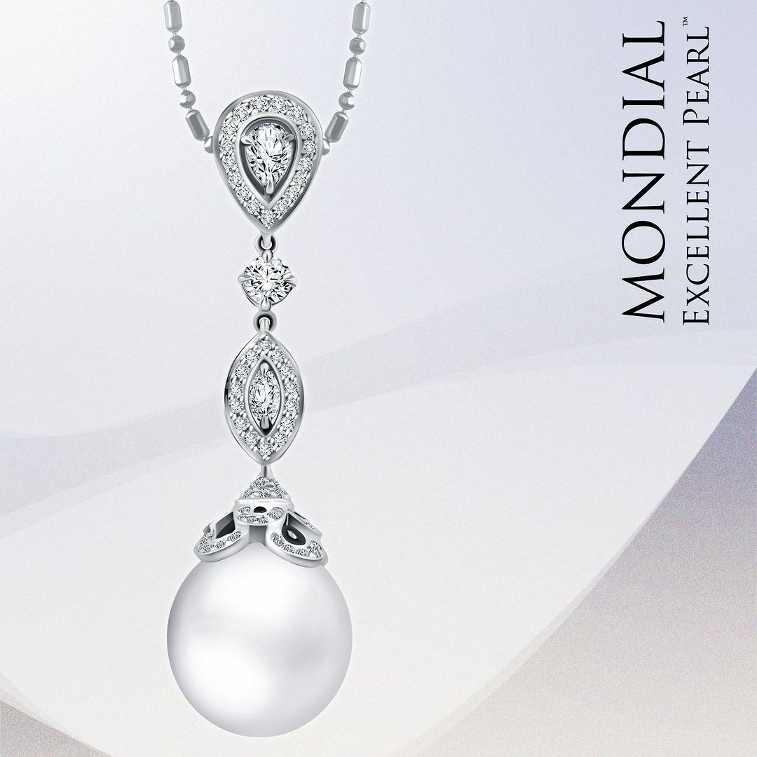 Tak hanya berlian, MONDIAL juga punya koleksi kalung dengan tatahan mutiara yang tak kalah cantik. Kilauan cemerlang dari Mondial Excellent Pearl sempurna dipadukan dengan outfit apa pun sepanjang hari sehingga menjadikannya hadiah yang sempurna untuk pasangan tercinta.