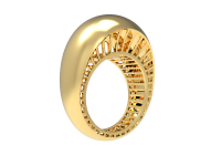 Ada pula pilihan model cincin lainnya yang punya bagian permukaan yang lebih datar. Tampil unik dengan warnayellow gold, cincin ini mudah dipadupadankan dengan berbagai model cincin lainnya.