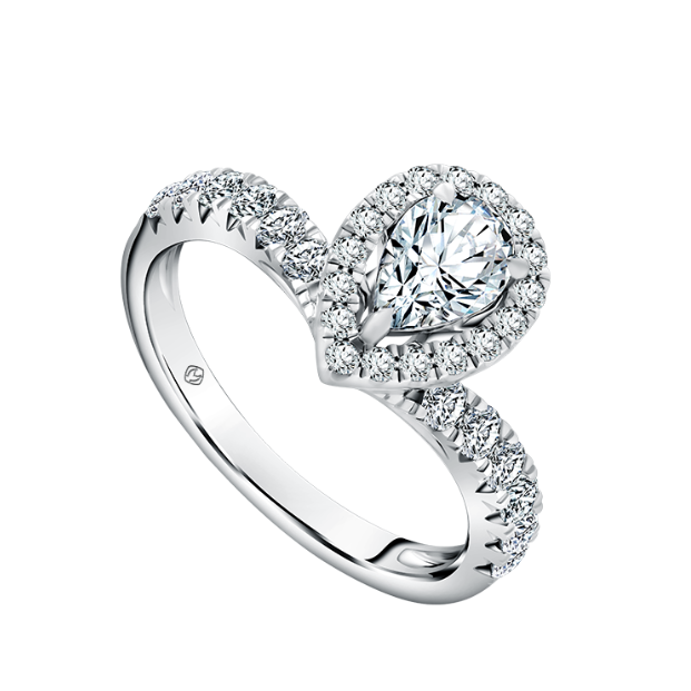 Salah satu pilihan di koleksi I Said MONDIAL hadir dengan cincin bertatahkan butiran berlian bentuk pear. Berlian berbentuk pear memiliki kelebihan yang dapat memberi siluet jenjang dengan desainnya yang meruncing di salah satu sisi.