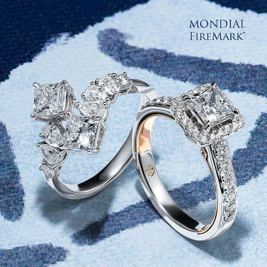 Koleksi MONDIAL FireMark bisa jadi pilihan anda untuk beragam koleksi perhiasan MONDIAL dengan berlian lainnya. Koleksi ini menghadirkan perhiasan dengan jenis cuttingberlian princess cut yang sempurna, yaitu berlian berbentuk persegi dengan kerucut di bagian bawah.