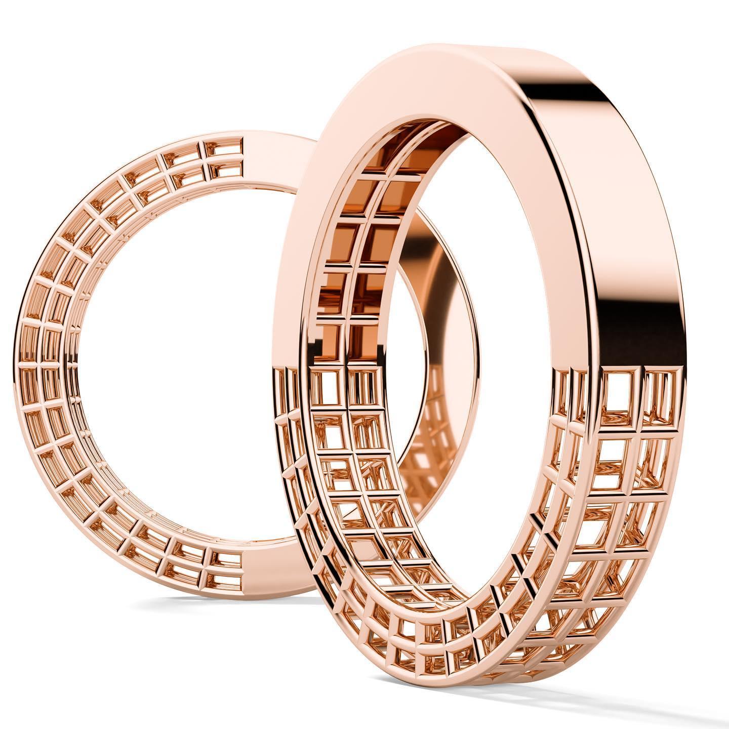 Rangkaian cincin geometris ini dilengkapi dengan desain berwujud persegi. Warna rose gold-nya membuat cincin ini tampil spesial. Untuk menyempurnakan koleksi, Anda bisa melengkapi penampilan dengan cincin ini berbentuk segi empat yang unik untuk menghiasi jari-jemari.