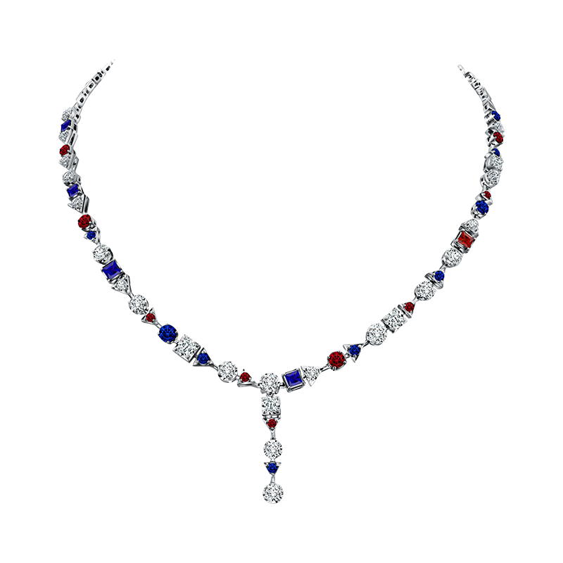 Salah satu koleksi MONDIAL Precious menghadirkan rangkaian perhiasan menawan dalam jewelry set MONDIAL Precious Opulence yang dapat dikenakan secara serasi bersama pasangan. Menampilkan perpaduan ruby, blue sapphire, dan berlian, kalung MONDIAL Precious Opulence menampilkan kombinasi yang luar biasa dari rangkaian batu rubi dan safir dalam untaian kalung berlian yang sophisticated.