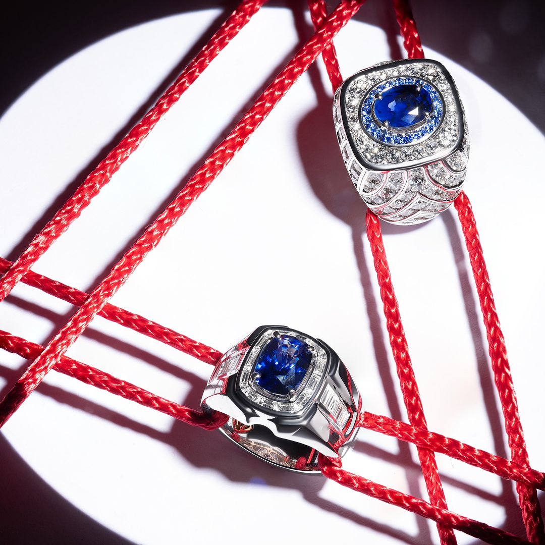 Perpaduan safir dan berlian, model cincin pria ini sangat sempurna dikenakan bersama batik. Melambangkan ambisi dan kemungkinan tak terbatas dalam perjalanan seorang pria untuk menjangkau mimpi yang tak terbatas.