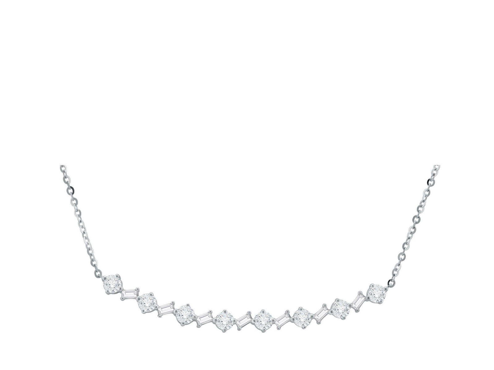 Salah satu koleksi perhiasan kalung berlian hadir dalam nuansawhite gold seperti berikut, Tampil mewah dan menawan dengan berlian berpotonganpear shape, marquise,danprincess yang mengelilingi keseluruhan kalung.