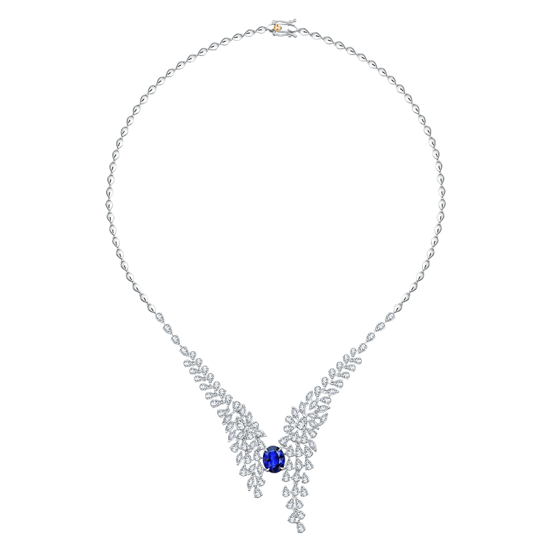 Anda yang ingin tampil elegan bisa memilih kalung berlian terbaru satu ini. Hadir dengan tatahan berlian dan safir biru dengan desain yang sophisticated membuat pesona Anda makin terpancar!