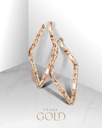 Kalau mencari anting-anting emas, Anda bisa memilih koleksi Geometric Earringsdi lini Frank Gold yangstylish dan modern. Salah satunya anting-anting bernuansarose golddengan desain bentuk segi empat.