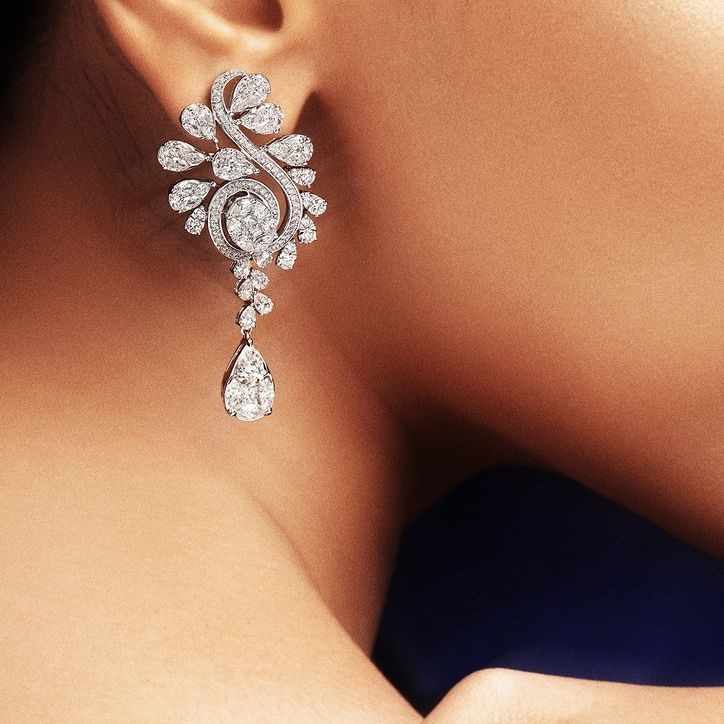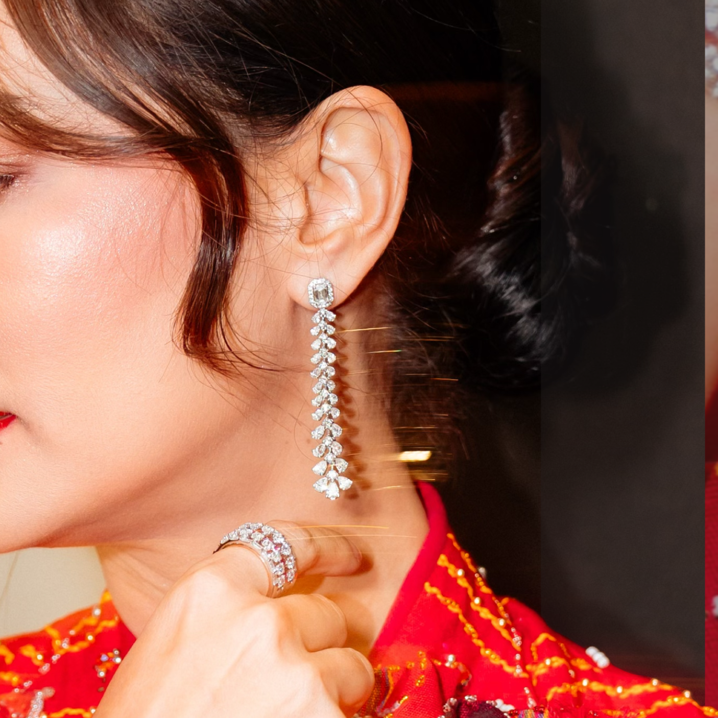 Chandelier earrings merupakan salah satu rekomendasi anting-anting berlian menjuntai yang mewah dengan bentuk menyerupai lampu kristal ornamen. Model anting-anting ini sempurna memancarkan sisi kemewahan, keanggunan, dan feminitas yang sempurna.