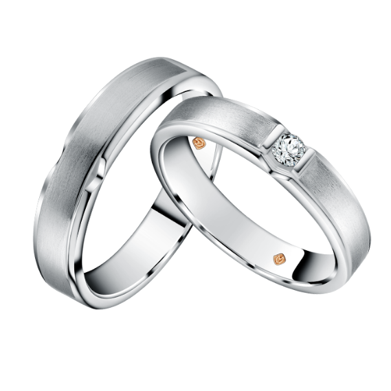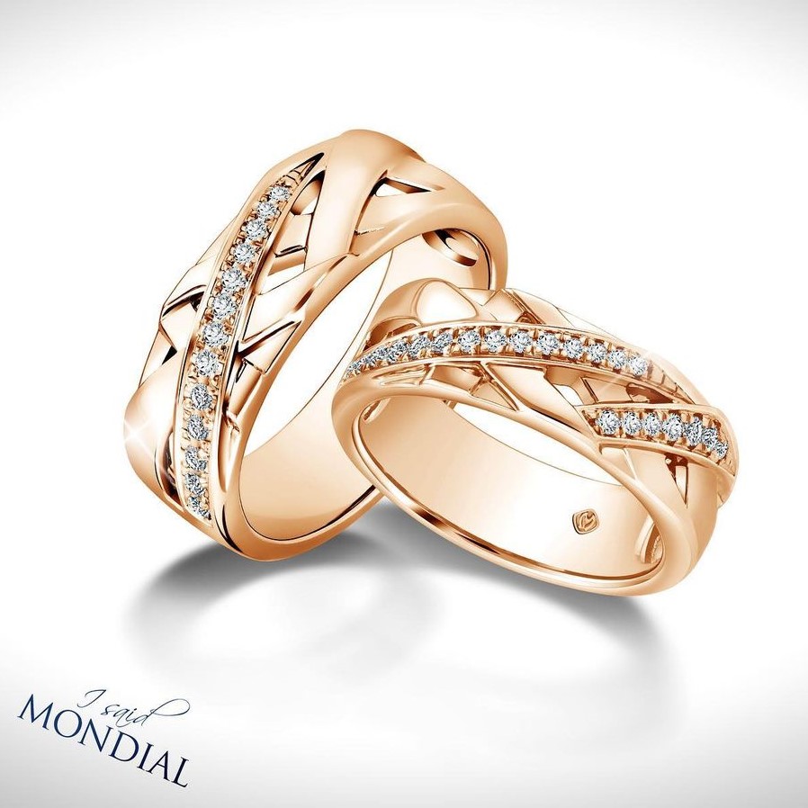 Rekomendasi lainnya untuk cincin kawin berlian pilihan pasangan muda yakni cincin dengan detail ukiran unik. Seperti pada koleksi MONDIAL Aureola Weave Wedding Ring Pair berikut yang memiliki detail menawan pada bagian band-nya.