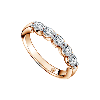 Pilihan lainnya yakni cincin rose golddengan 5 butir oval diamond yang mampu pancarkan aura cantik Anda.