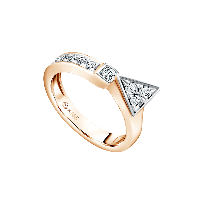 Cincin berlian ini akan menjadi hadiah Natal yang istimewa. Desainnya unik dengan pola desain geometris segitiga yang berani dan pola menanjak. Menyeimbangkan keanggunan klasik dengan desain kontemporer, cincin ini berhiaskan berlian princess cut dan 10 round diamond yang menawan.