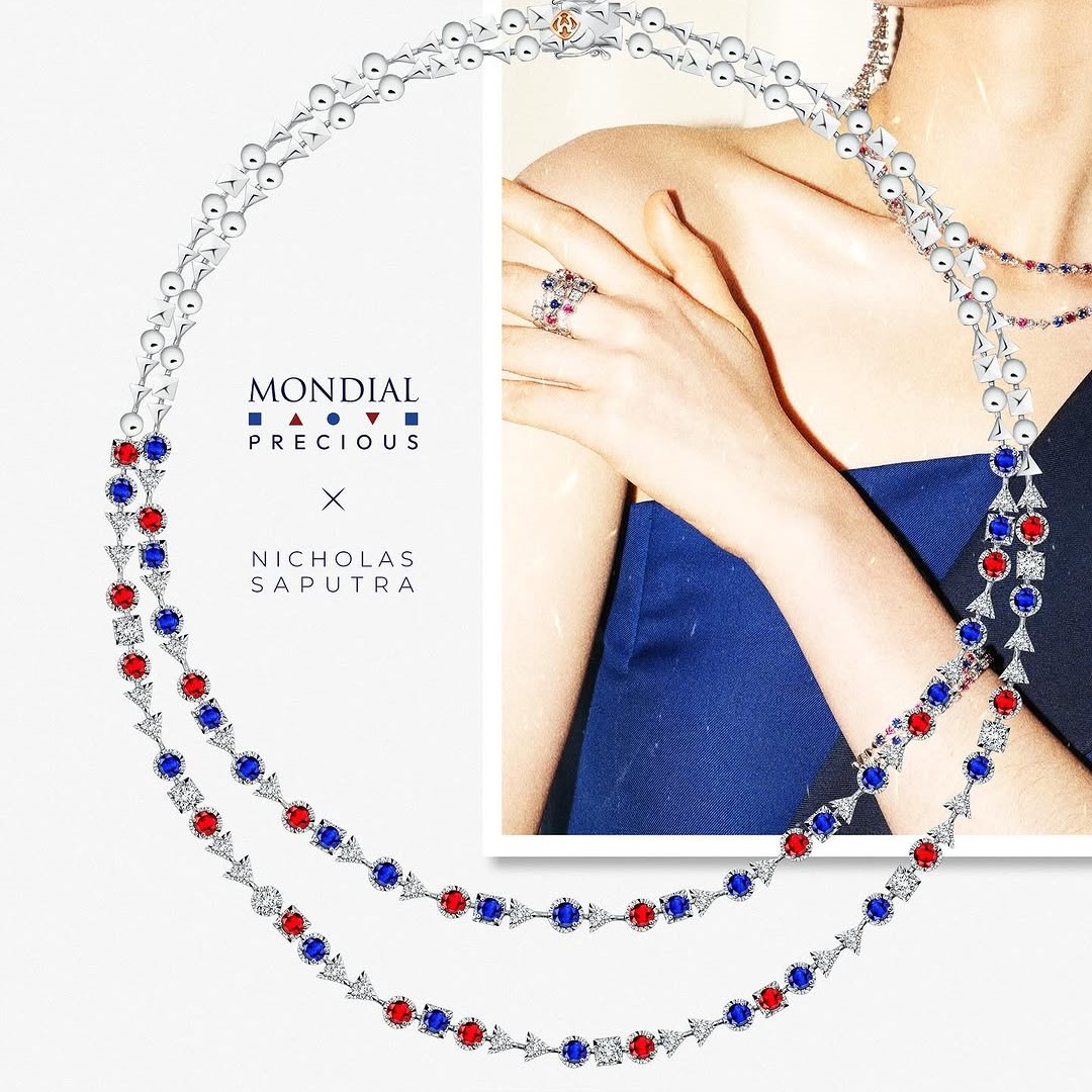 Salah satu koleksinya hadir dengan MONDIAL Precious. Setelah sukses dengan seri pertama MONDIAL Precious, MONDIAL kembali mengajak Nicholas Saputra untuk melengkapi koleksi ini dengan beberapa seri baru, namun dengan tetap mempertahankan ciri khas bentuk geometrisnya yaitu bulat, persegi, dan segitiga. Kembali memadukan kemewahan berlian dan precious stones, rangkaian perhiasan New MONDIAL Precious menghadirkan nuansa baru ke dalam perhiasan yang kaya akan kilau dan penuh warna.