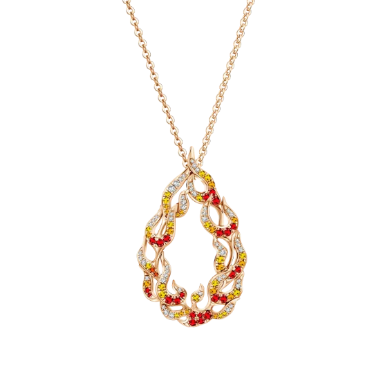 Pilihan yang berani untuk gaya kreatif dan unik, liontin dengan desain artistik jadi pilihan yang sempurna. Seperti liontin Lavart MONDIAL dari koleksi MONDIAL Fire. Menangkap keindahan lava cair yang tak terkendali, Liontin Lavart menangkap desain dengan seni yang berani dan energi yang bersemangat. Dibuat dalam bentuk kerawang emas mawar yang rumit, liontin ini berputar dengan batu rubi yang menyala-nyala dan batu safir kuning yang cemerlang.