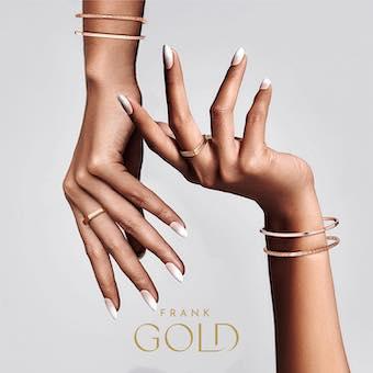 Bagi Anda yang menyukai perhiasan emas, lini Frank Gold bisa jadi opsi sempurna. Lini Frank Gold adalah perhiasan emas dengan desain yang trendi, dibuat eksklusif menggunakanpremium goldSNI denganNew Technologydari Italia. Dapat dipakai untuk pria maupun wanita, perhiasan di lini Frank Gold melambangkan individu yang optimis, ceria, berani, dan gemar memakai perhiasan dalam penampilan sehari-hari.