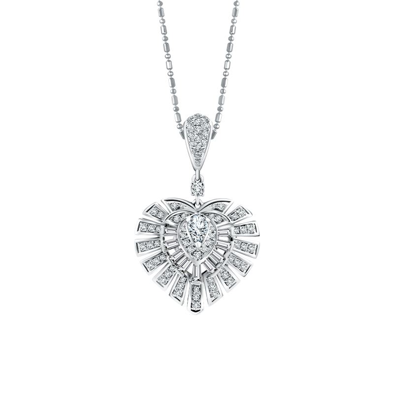 Mondial Gala Ballad Pendant memiliki desain kipas klasik disusun membentuk heart pendant. Liontin ini begitu berkilau karena tiap butiran berlian berbentuk round, pear, dan tapered yang mewah. Pendant ini merepresentasikan fashion yang timeless akan membuat Anda menjadi spotlight di perayaan istimewa.